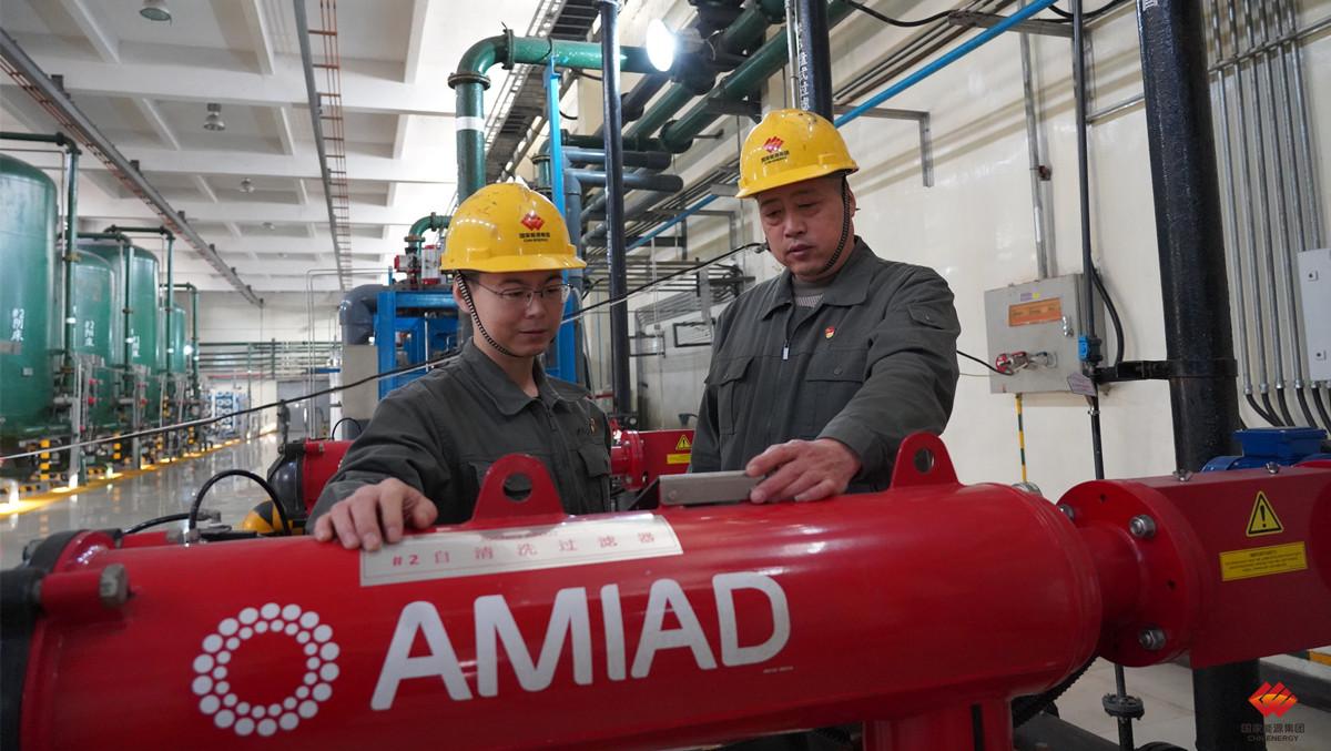图为该厂发电部人员正在对除盐水预处理系统网式过滤器进行检查。