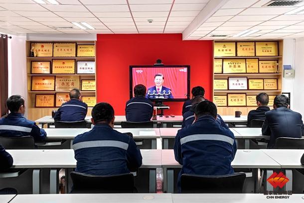 包神铁路集团甘泉铁路公司金泉站区党支部组织党员在党员活动室收看党的二十大开幕会直播。