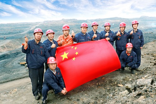 乌海能源公司加强党的建设,充分发挥党员的先锋模范作用,带领职工群众攻坚克难。图为苏海图煤矿在采空区综合治理现场与国旗合影。