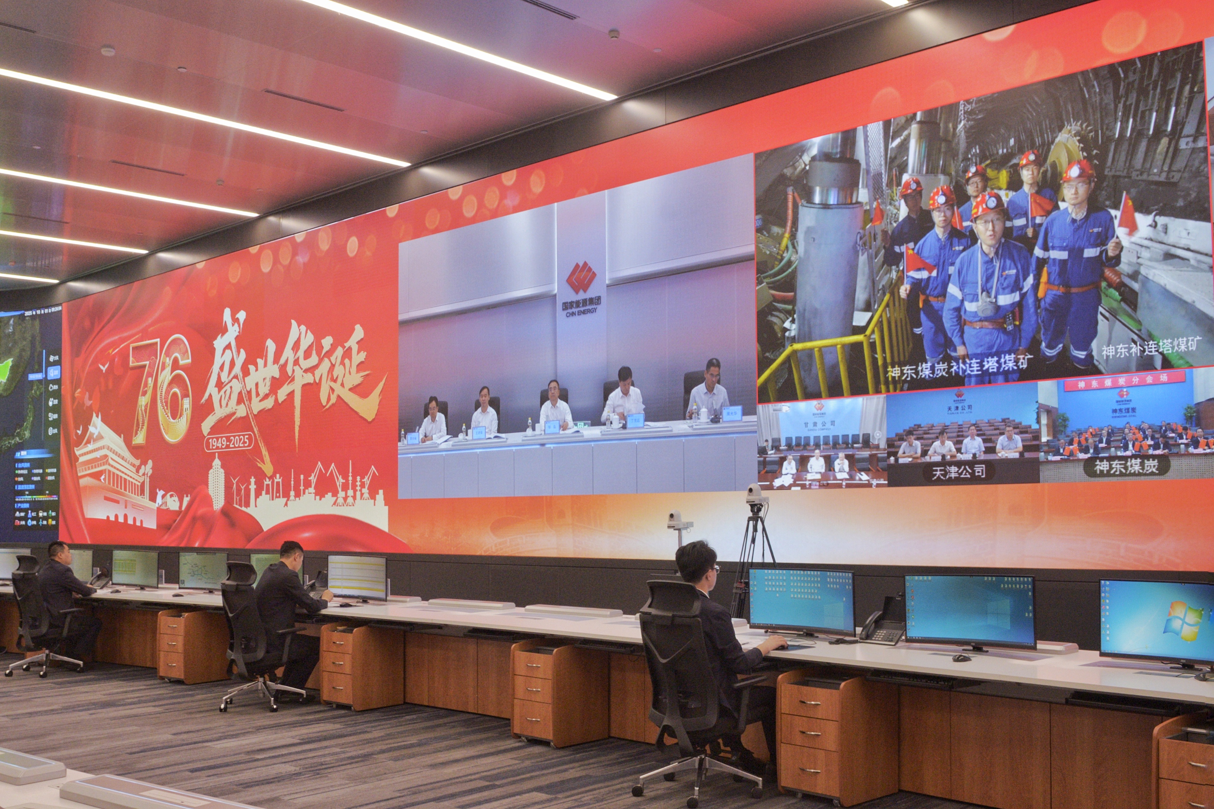 在生产调度指挥中心召开2025年国庆中秋假期生产运营调度视频会。集团公司党组书记、董事长邹磊代表集团党组,亲切看望生产调度指挥中心在岗值班干部员工,通过视频连线形式向两节期间坚守岗位的生产运营一线干部员工致以节日问候,并对做...