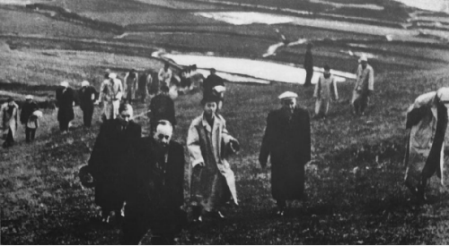 图为苏联专家现场勘探选址