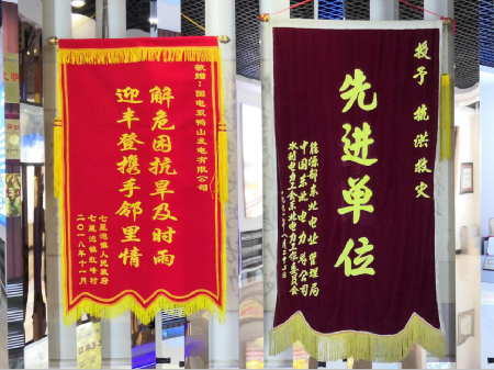 如今,抗洪和抗旱的锦旗放在一块,一新一旧,却同样温暖人心。