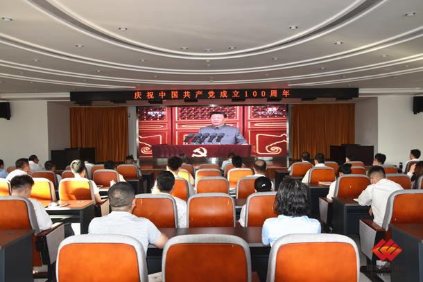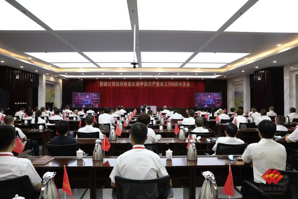 图为新疆公司党员领导干部在会议室收看庆祝中国共产党成立100周年大会