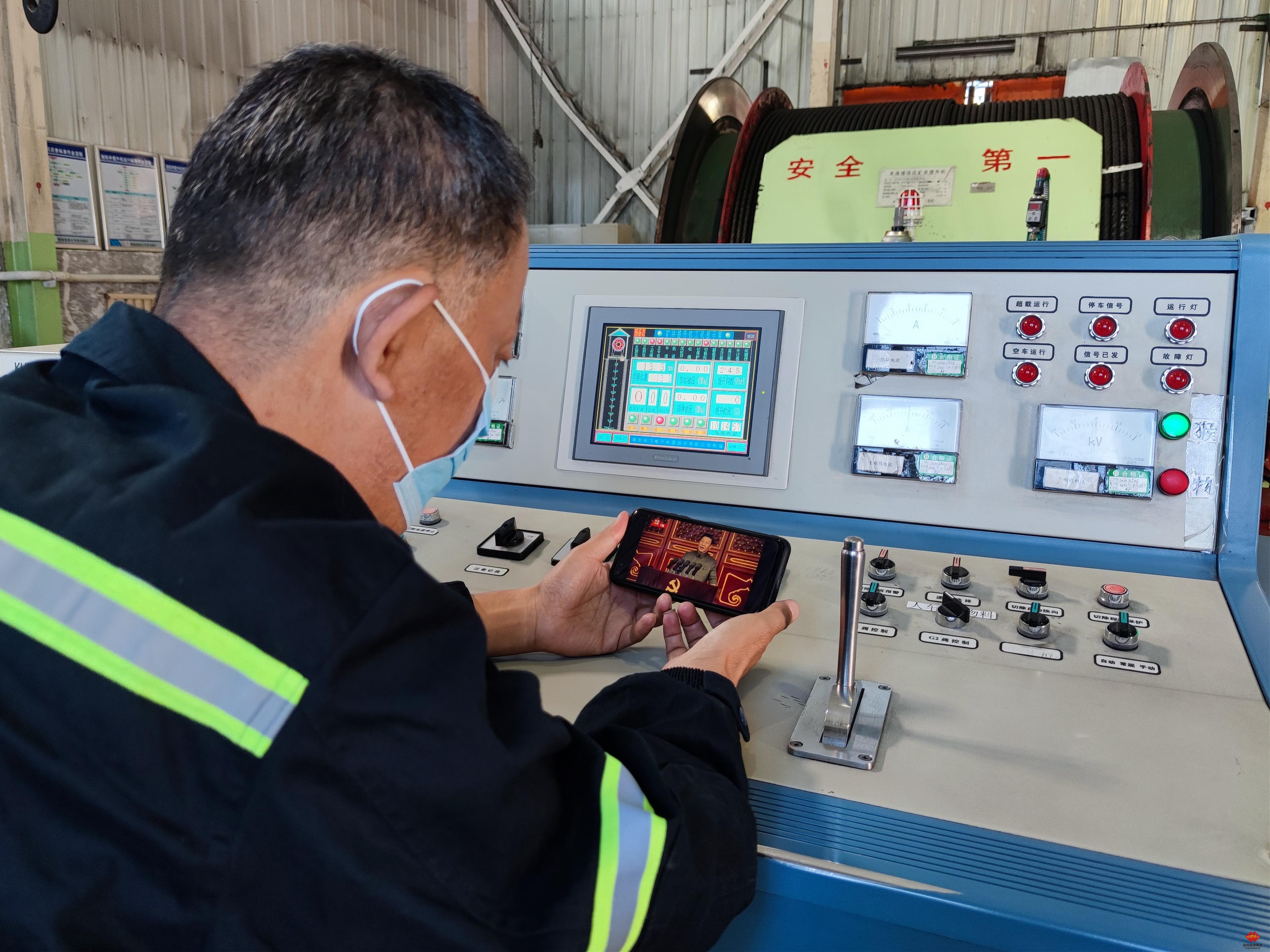图为新疆公司宽沟煤矿党员职工在绞车房收看庆祝中国共产党成立100周年大会